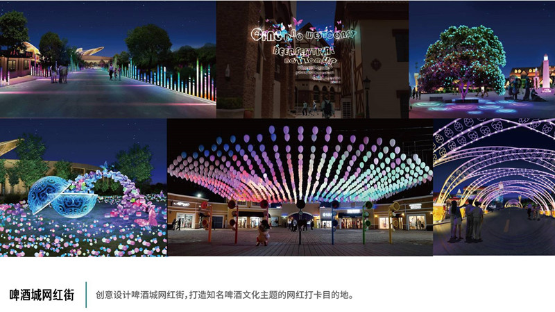 夜幕降臨,華燈初上,音樂大道、海韻大道、啤酒大道、星光大道美輪美奐,啤酒文化博物館、啤酒花園酒吧街、“啤酒女神”雕塑、金啤精釀體驗(yàn)館彰顯魅力,鳳凰之聲大劇院、啤酒休閑大篷、啤酒花園精釀酒吧街相得益彰,大海、啤酒、美食、音樂讓人流連忘返,激情、浪漫、時(shí)尚、璀璨不夜城美不勝收,成為青島乃至全國新的網(wǎng)紅打卡目的地。