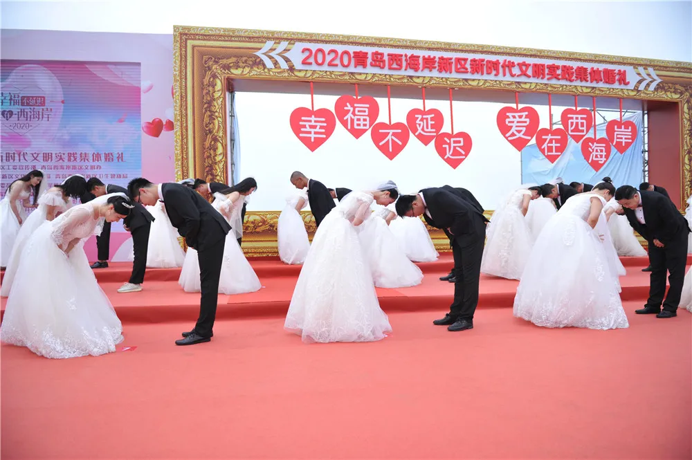 27對新人中,有奮戰(zhàn)在醫(yī)療救治一線的醫(yī)護人員、有堅守在防控前沿的公安民警、守望相助的熱心市民,為了抗擊疫情,他們積極響應號召,主動推遲婚期,積極投身抗疫。隨著疫情防控形勢持續(xù)向好和經(jīng)濟社會發(fā)展逐步恢復,在嚴格落實各項疫情防控措施基礎上,新區(qū)工委宣傳部、區(qū)文明辦攜手相關部門,共同為他們舉辦這場“集體婚禮”,見證他們“戰(zhàn)袍換嫁衣”的最美愛情?;槎Y現(xiàn)場,27對新人還共同發(fā)出倡議,希望廣大新區(qū)青年弘揚傳統(tǒng)美德,摒棄婚禮陋習,抵制盲目攀比,倡導文明婚嫁,為建設開放新區(qū)、現(xiàn)代新區(qū)、活力新區(qū)、時尚新區(qū)貢獻青春力量。