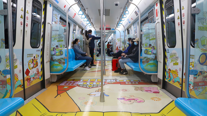 日前,“黃發(fā)集團號”地鐵3號線品牌推廣專列上線發(fā)車。一系列獨具青島西海岸新區(qū)特色的品牌創(chuàng)意布滿車廂,引來不少乘客打卡合影。
