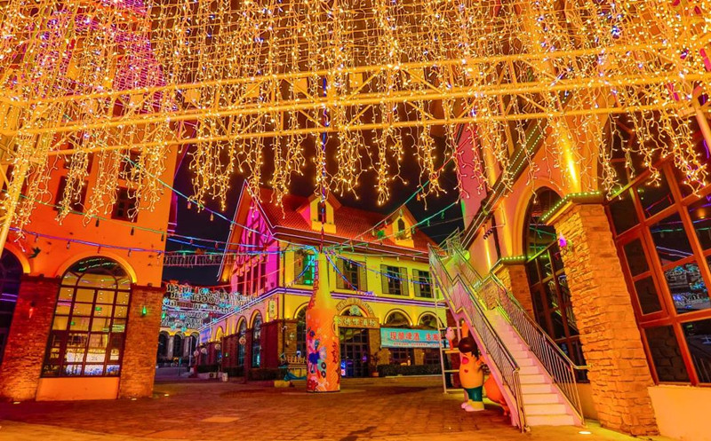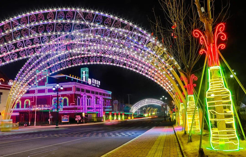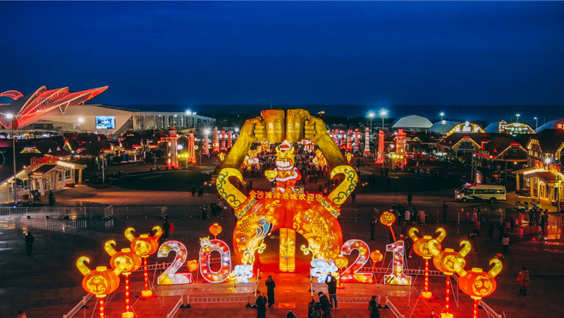 夜幕降臨,金沙灘啤酒城內(nèi)成了一片“燈海”世界,就地過年的游客紛至沓來,感受不一樣的年味兒。“彩燈時(shí)尚靚麗,我們拍了很多照片,發(fā)給家人讓他們一起感受這里的新春氛圍?!绷粼谛聟^(qū)過年的外地人唐越說。