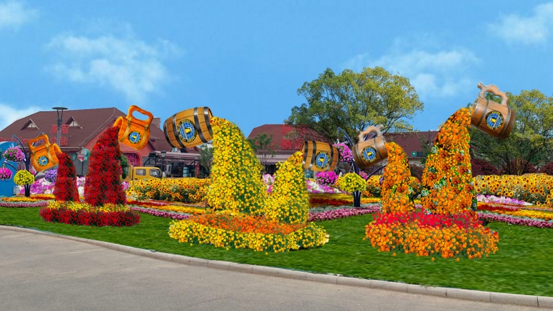 今年,金沙灘啤酒城全新創(chuàng)意打造了“花?!薄盁魠R”兩大特色,全面呈現(xiàn)建黨百年的主線和“華彩啤酒節(jié)”主題,營造“白天游花?!薄耙雇碣p彩燈”的節(jié)慶氛圍。其中,城內(nèi)新種植了300余種、約2萬平方米時令花卉,設(shè)置20余組造型花藝組合、創(chuàng)意花卉場景,打造“花開全城、人游畫中”的錦繡美景。同時,30余組創(chuàng)意彩燈組將打造出迎賓慶典、非遺體驗(yàn)、本土風(fēng)情、多彩新區(qū)、歡樂海灣五大主題區(qū),點(diǎn)亮不夜啤酒城。
